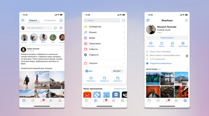 Также мы освободили место для новых сервисов и органично вписали уже существующие — ведь только за последний год «ВКонтакте» появилась платформа VK Mini Apps, карточки музыкантов, подкасты, новые закладки и другие нововведения. Теперь всё на своих местах».